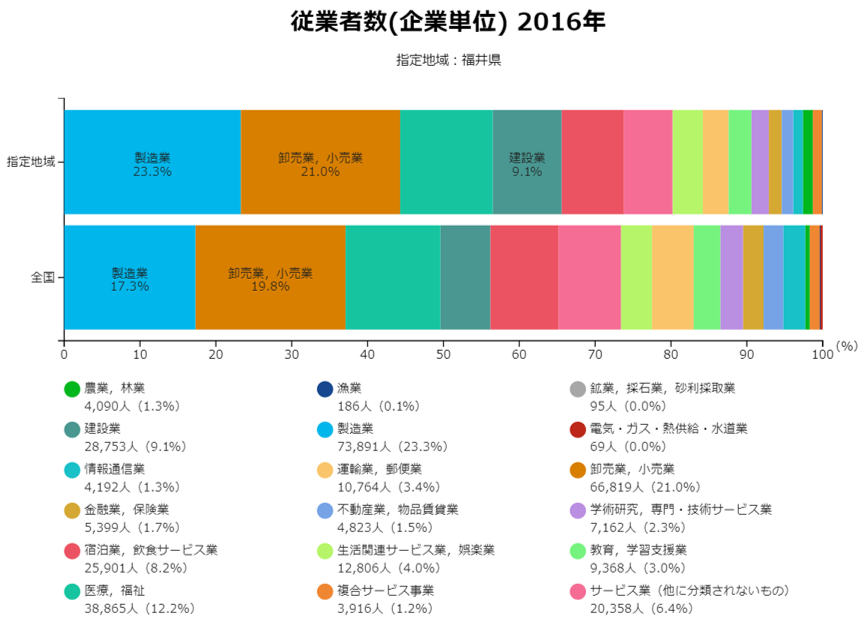 製造業は、前述のとおり繊維・眼鏡(金属系)・機械系の製造業が強いとのことでしたので、その裏付けでしょう。